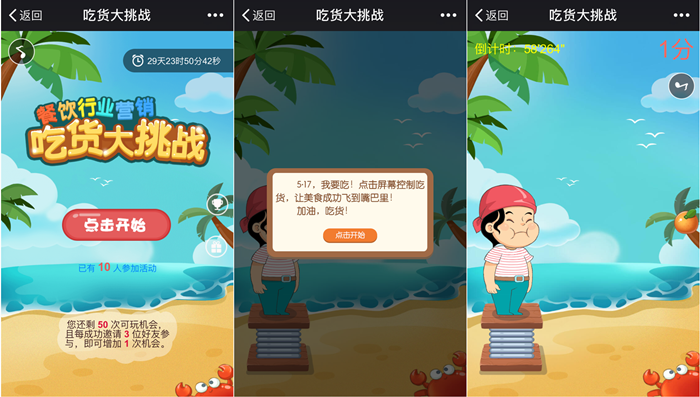应用场景:适用于餐饮行业的吃货节营销,以及其他节日节点营销活动。商家可以在游戏中设置一些试吃券、优惠券等等形式的奖品,通过游戏将线上的粉丝引流至商家线下实体门店,进行体验和消费,实现粉丝的转化。