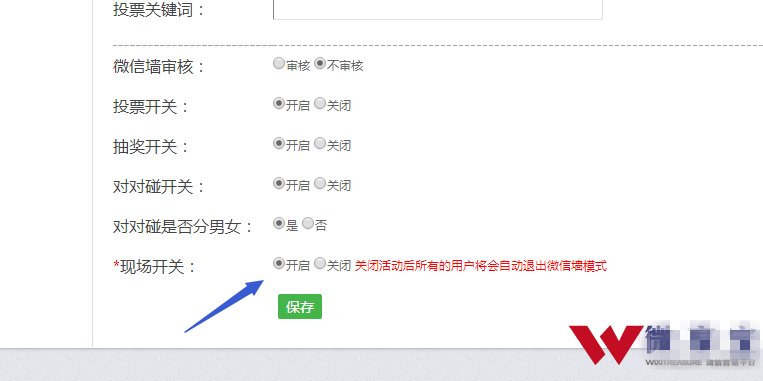 再下面就是这些活动的开关了,注意最后一个开关,现场开关,这个必须开启,完了保存就好了。